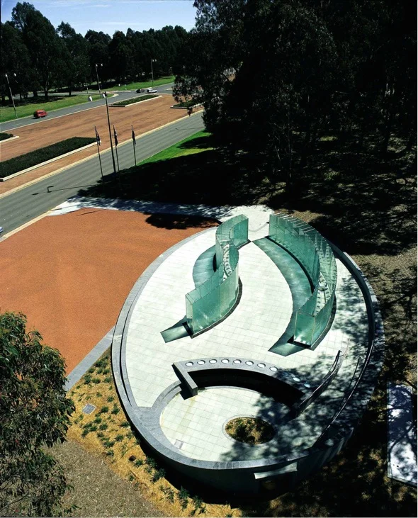 Some panels are blank. This is intentional, reminding visitors of the inconclusive nature of any memorial to an ongoing Service group. The memorial is distinctly horizontal and the form of the interlocking glass walls represents nurturing hands, symbolic of nursing. A contemplative space surrounded with rosemary for remembrance completes the memorial.