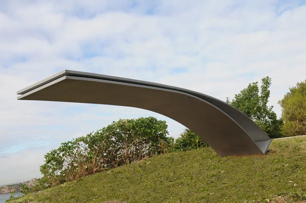 Award winning sculptor Mark McClelland's latest work 'of memory' will be shown for the first time at this year's Sculpture by the Sea, in Mark's Park, Bondi. Constructed from steel plate and bonded with Axolotl Aluminium, the sculpture is a span structure, cantilevered into space from one fixed point
