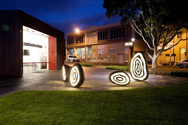 Axolotl were recently engaged to collaborate on yet another public artwork further cementing our commitment to local artists and art in the community. This unique installation, created by Jane Cavanough of Artlandish, marks the entrance to the recently opened Bankstown Arts Centre. Commissioned by Bankstown City Council, the installation makes reference to the renowned lapidary workshop, residing in the Arts Centre, and the jewel-like polished stones created from rocks and minerals by the lapidary craftsmen.