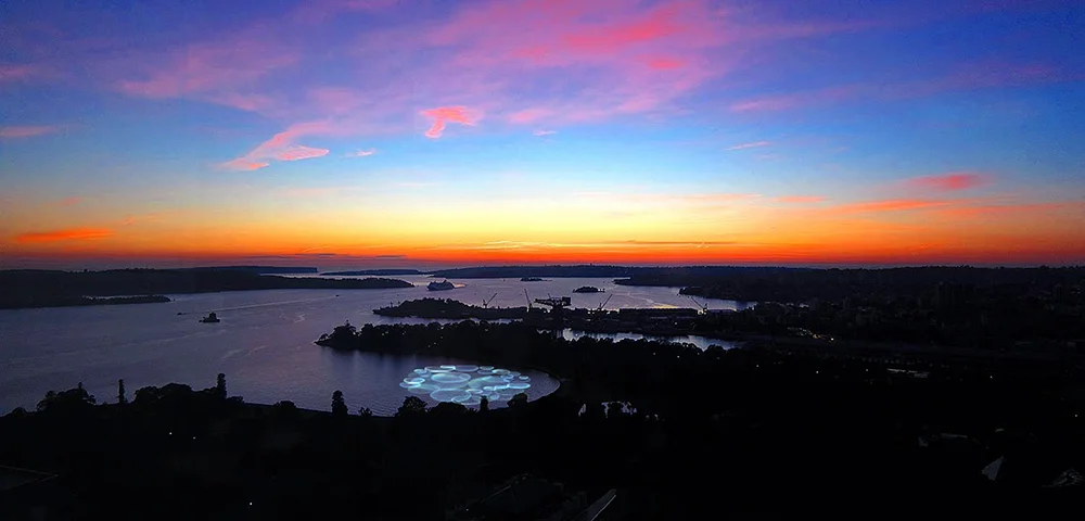 Designed with 5,000 light components, the cells cluster in random yet intentional radial patterns. The installation was designed with the intention to match the scale of the cove, and to create an awe-inspiring botanic water garden. The cells appear as though with time, they would continue to multiply and grow to take over the harbours.