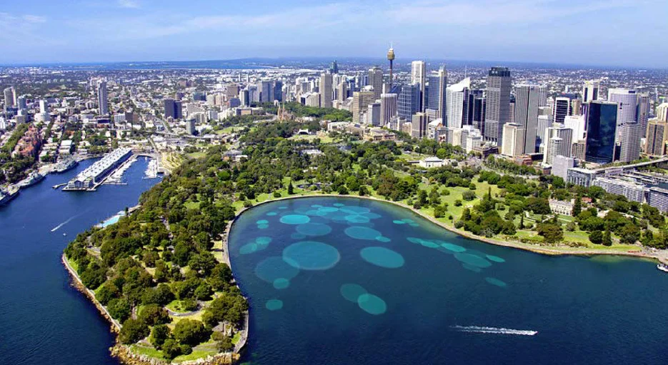 Description: The beautiful circumferential body of water that is Farm Cove has a broad naturally defined edge that runs into Sydney’s Royal Botanic Garden, it is also in part shaped by a man-made sandstone sea wall.