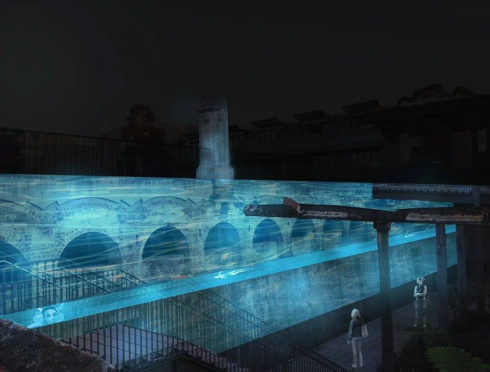 The installations idea harks back to the reservoirs original built purpose, and emphasises its shortcoming by presenting an image of a reservoir 5 foot drained, re-purposed as a pool with a swimmer in its illustrious water.
