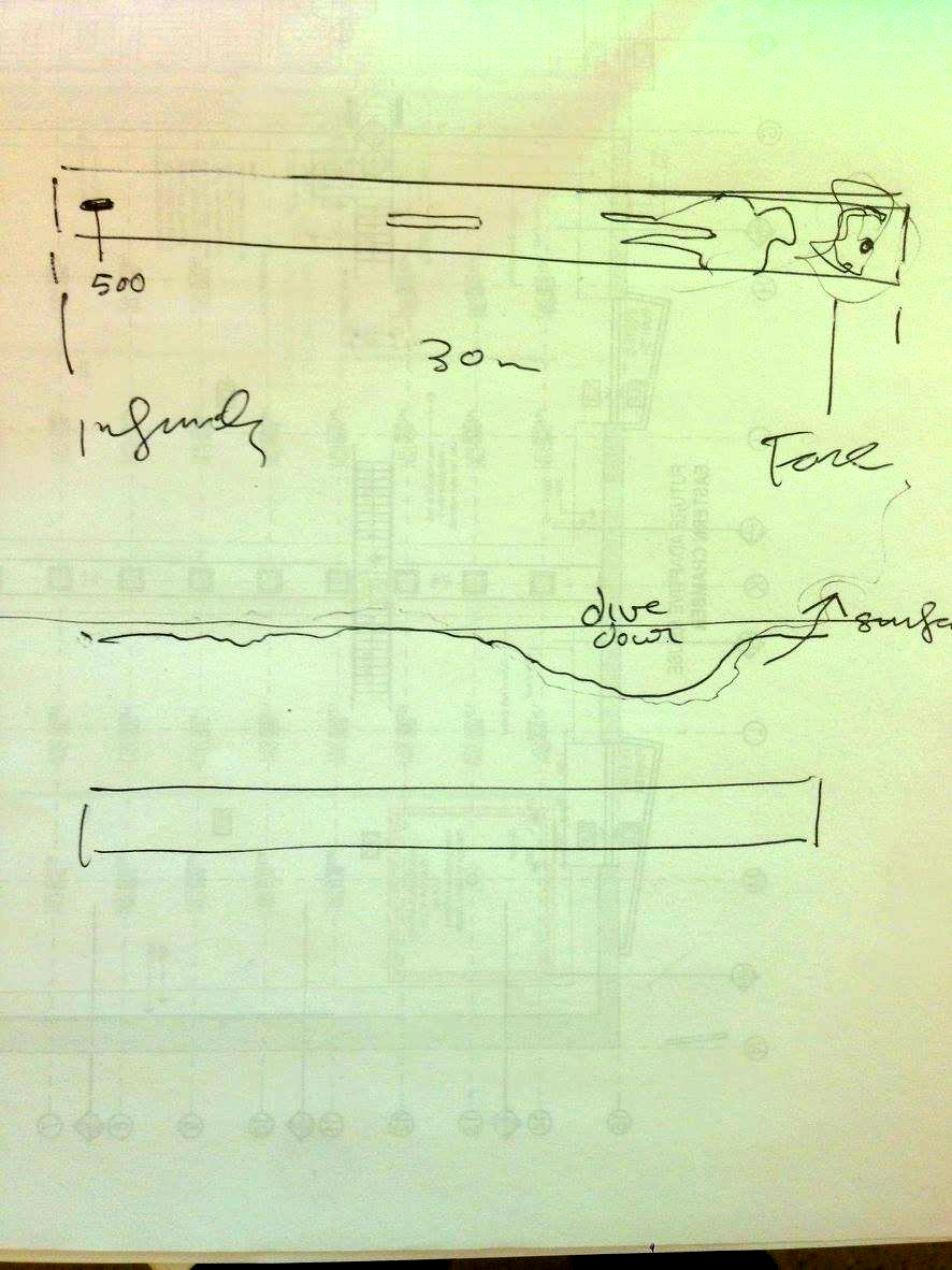 The intensity is brought to the over scaled swimmer, whose body will in part be out of frame as they swim laps along the wall.