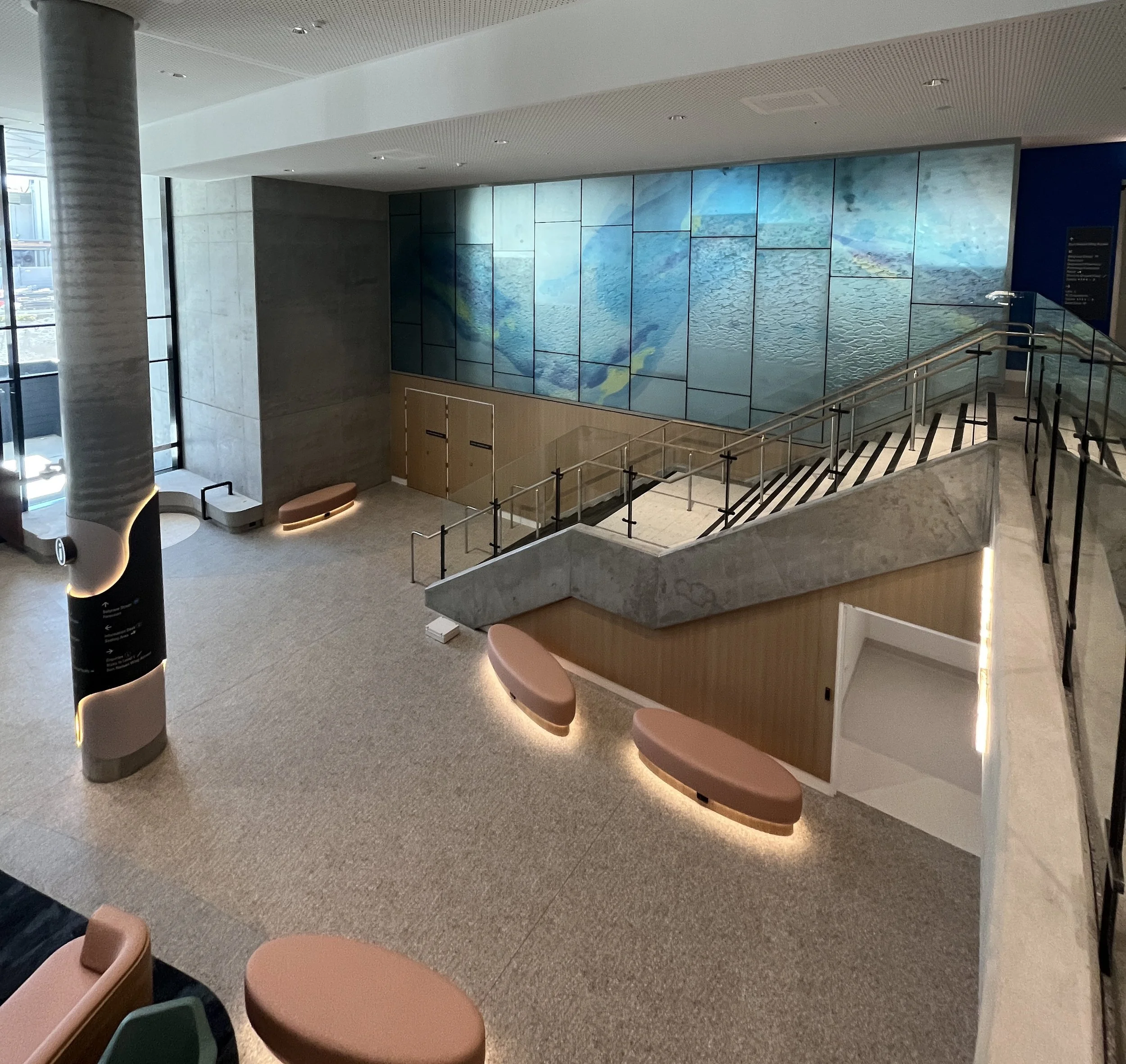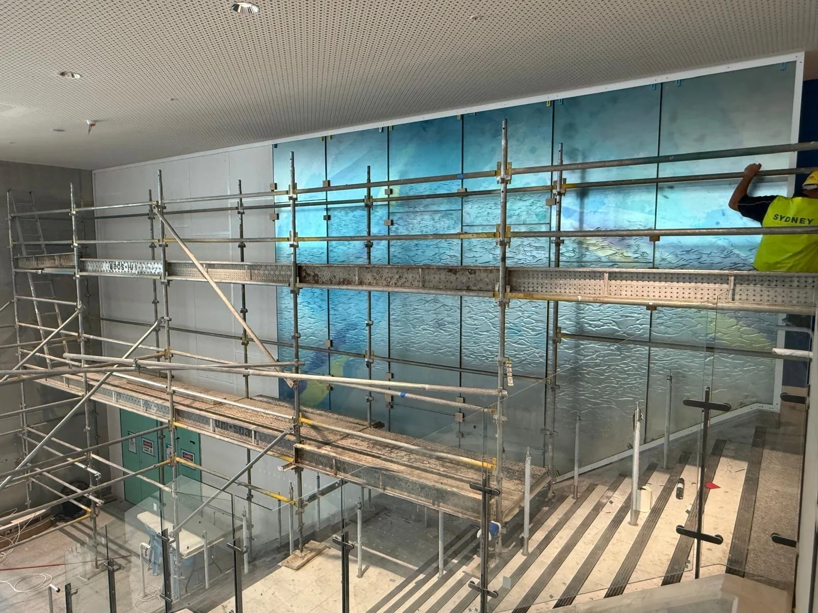 Materials: Kiln cast glass, printed interlayer, Mirror